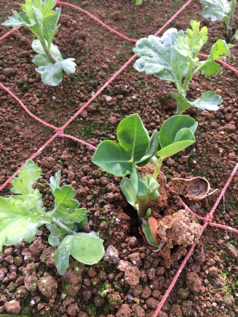 至る所からピーナッツ(落花生)の芽生えが確認されております。